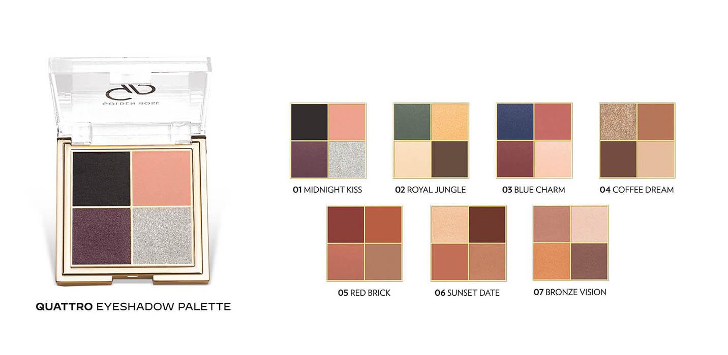Paletka očních stínů se skládá z různých povrchových úprav - od lesklých a perleťových, po matné a saténové. Každá paletka očních stínů obsahuje čtyři univerzální a perfektně sladěné odstíny, které lze používat samostatně nebo vzájemně kombinovat. Tmavší odstíny pomohou vytvořit výraznější efekt, světlejší barvy dodají přirozenější vzhled a třpytivé odstíny dodají vašemu očnímu líčení nápadnou úpravu. Oční stíny jsou vysoce pigmentované a zajistí bezchybný vzhled po mnoho hodin.